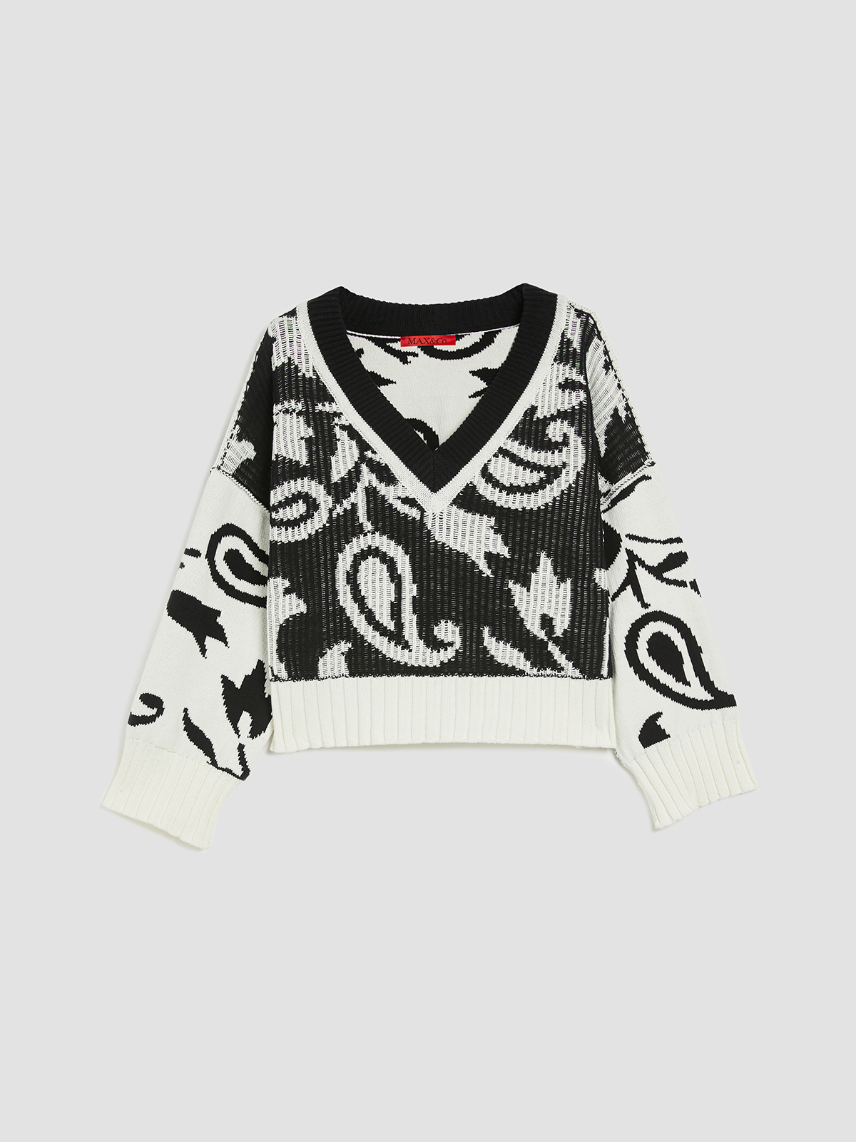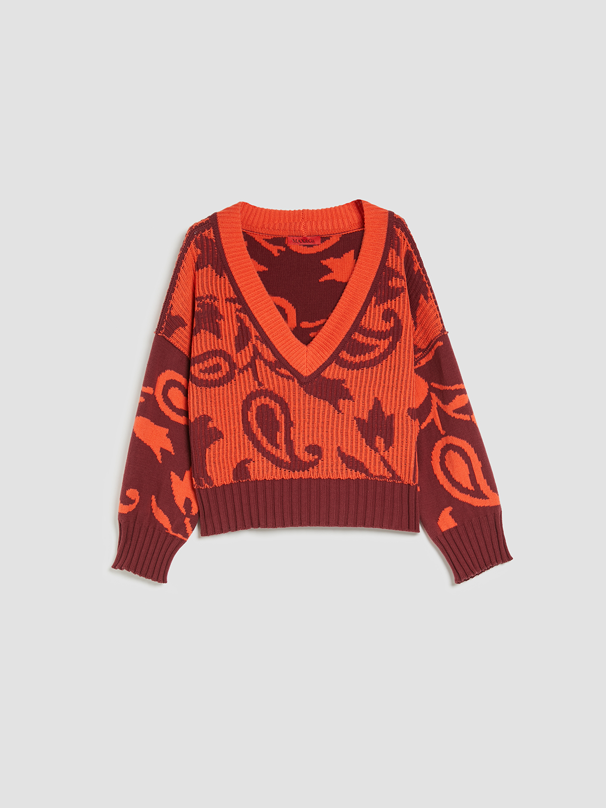 ペイズリーの織り柄が特徴的なコットンブレンドリバーシブルニット。