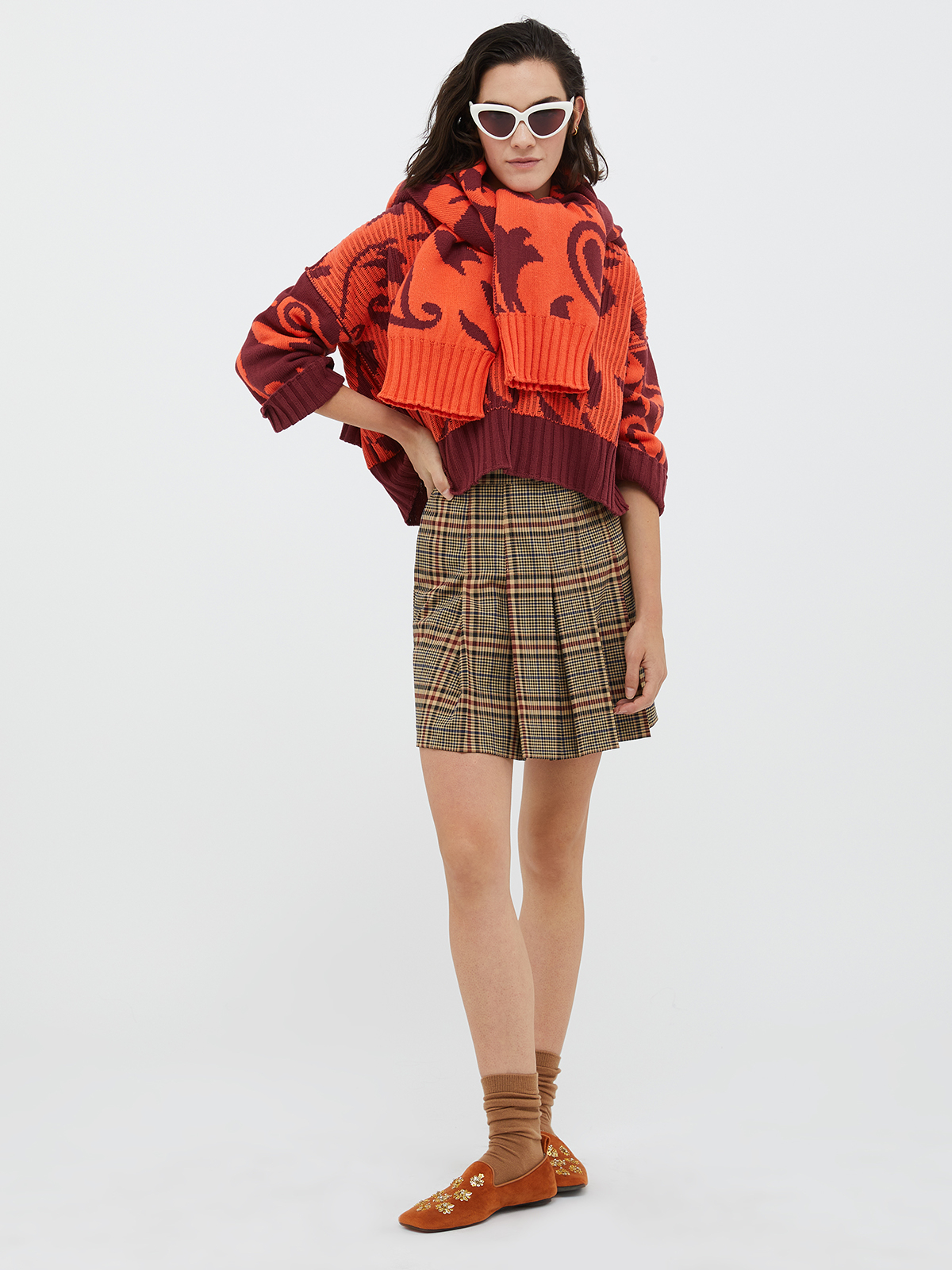 スカートにもパンツにも合わせやすい着丈です。様々なコーディネートをお楽しみください。