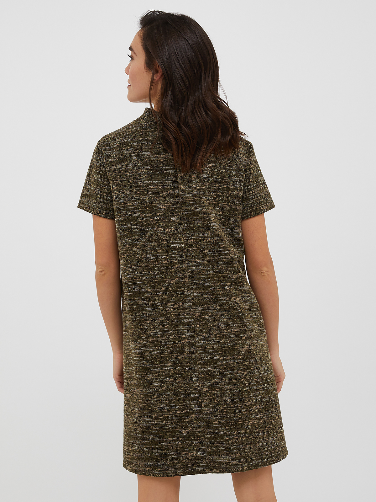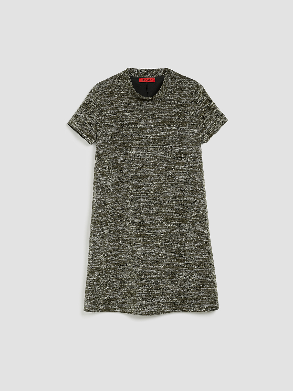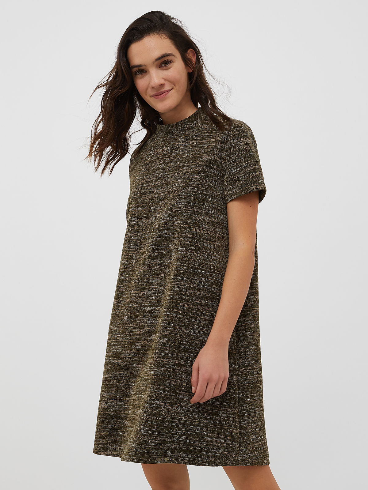 ラメ糸を入れたマルチカラーストライプのジャージーフレアドレス。