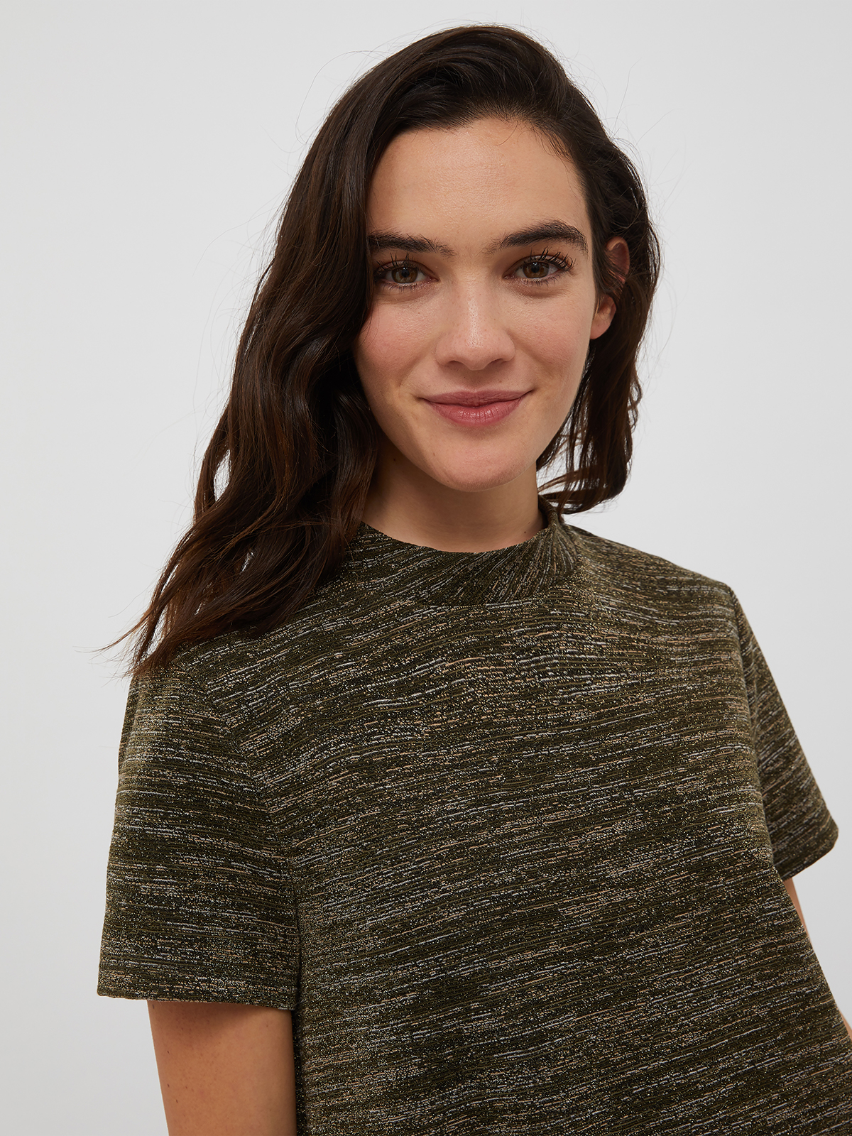 <素材>本体:レーヨン 53%、ナイロン 25%、金属繊維 10%、ポリエステル 10%、ポリウレタン 2%