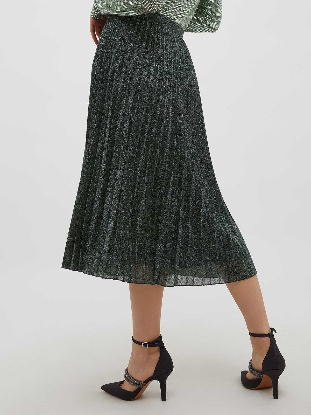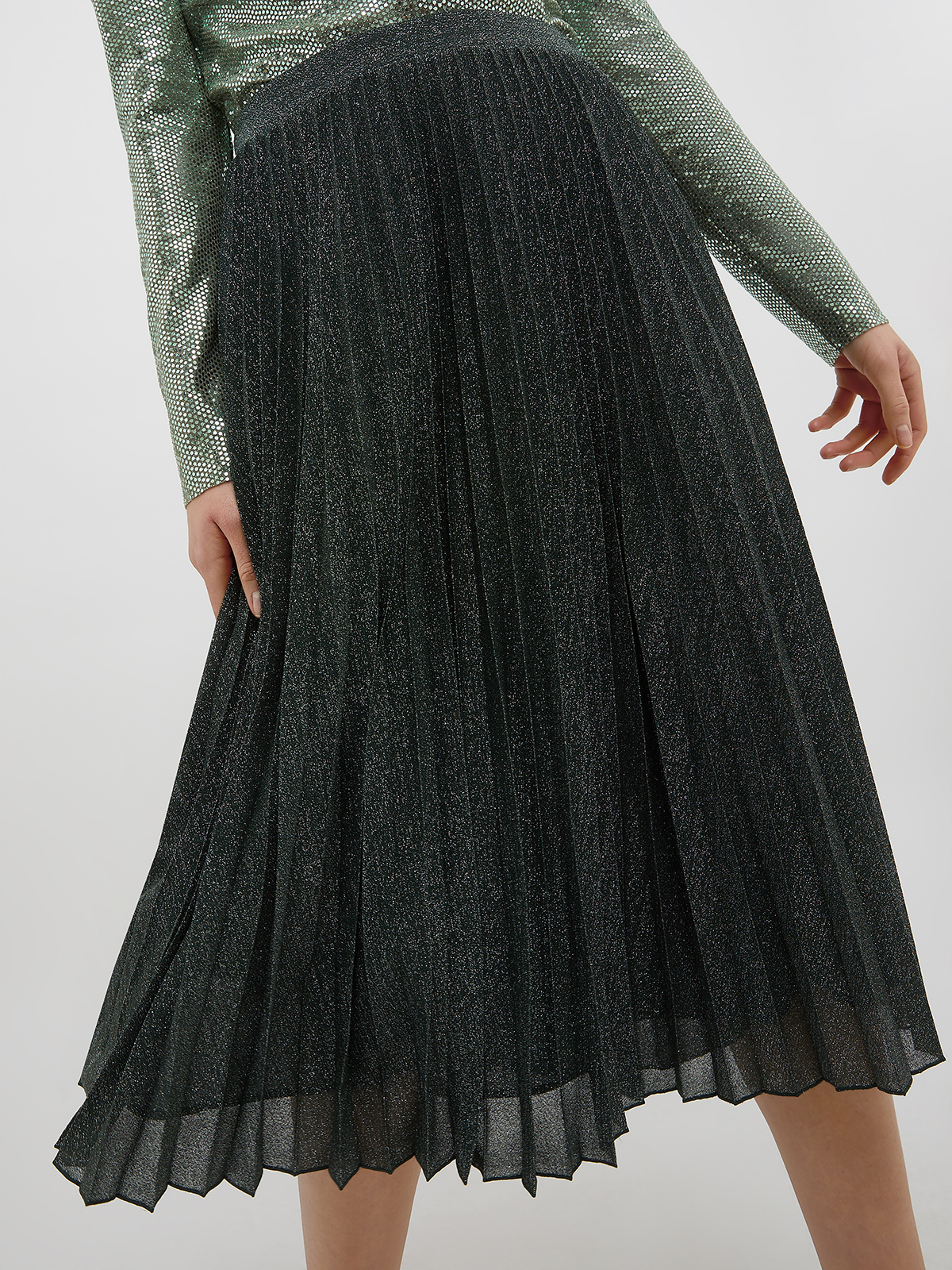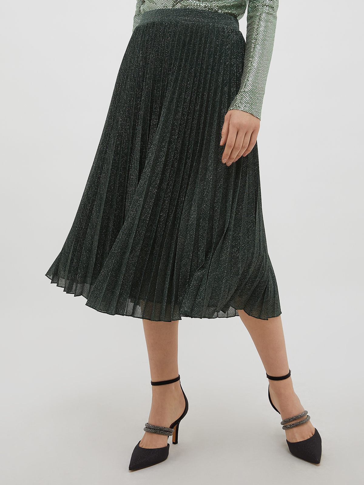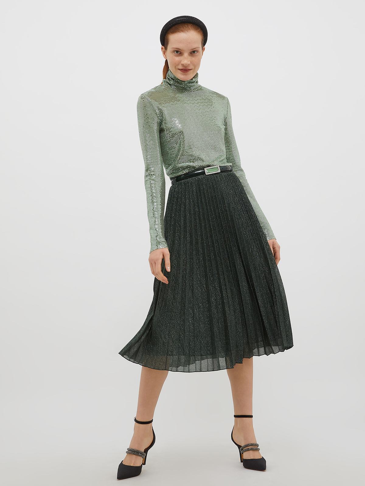 上品な光沢感が魅力的なプリーツジャージースカート。