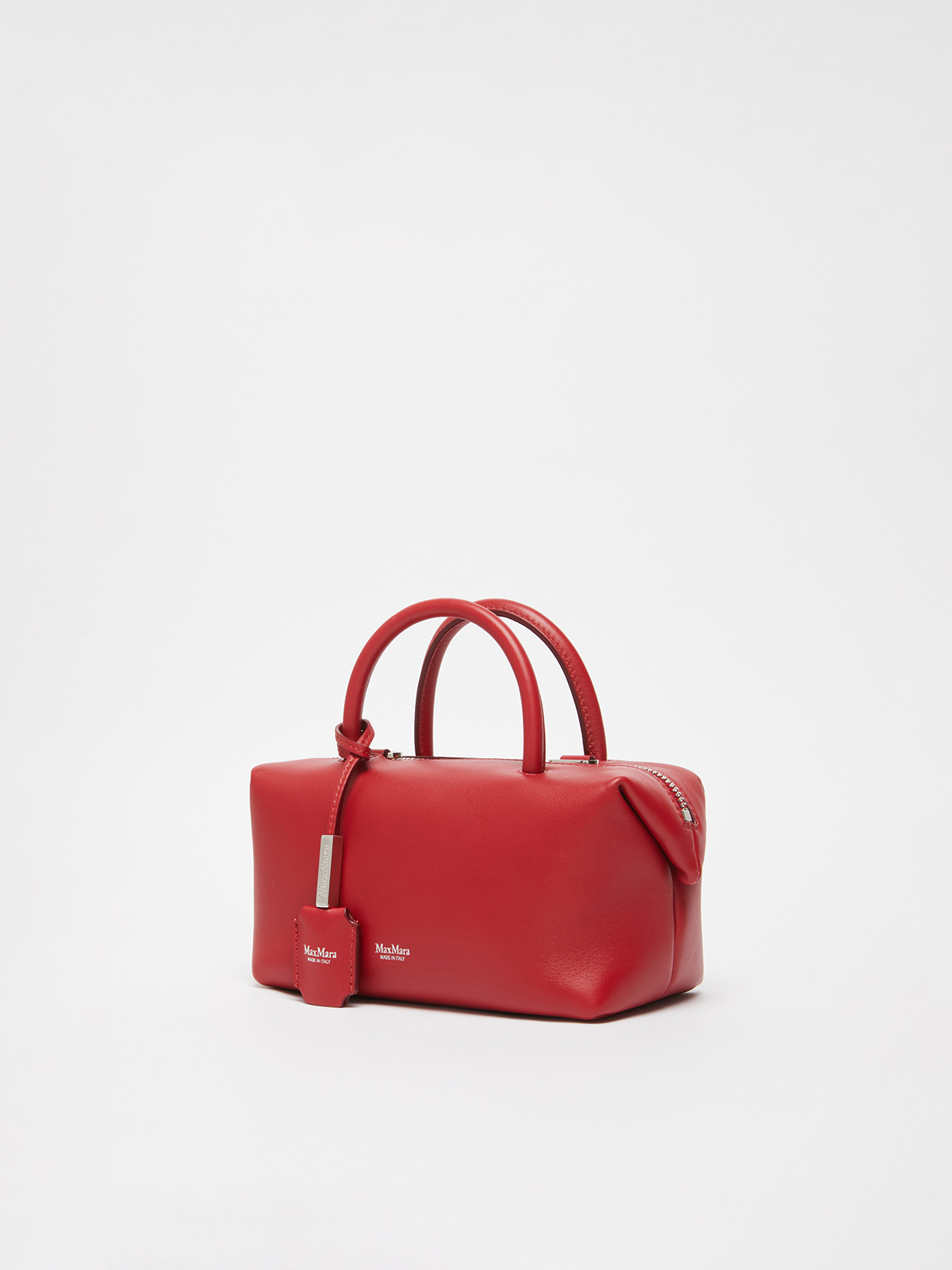 ワックス仕上げのソフトで滑らかなカーフレザーを使用したダブルハンドルバッグ。