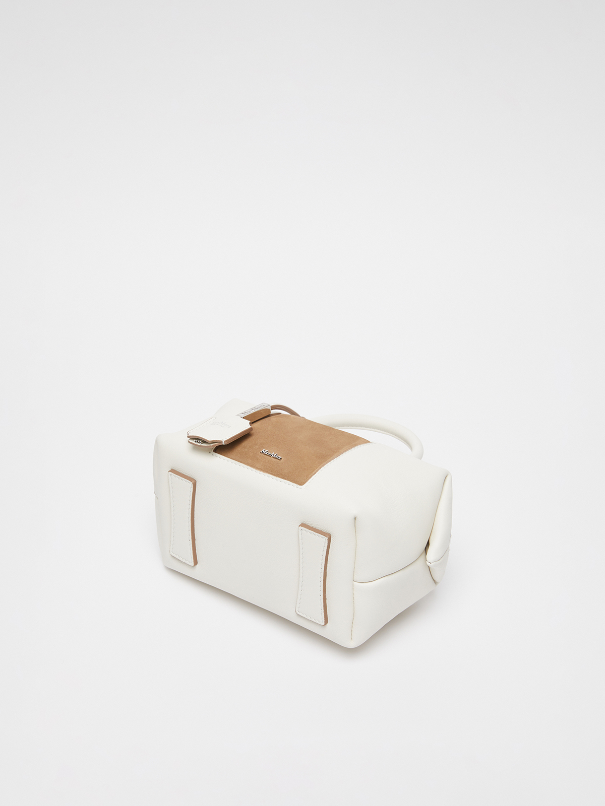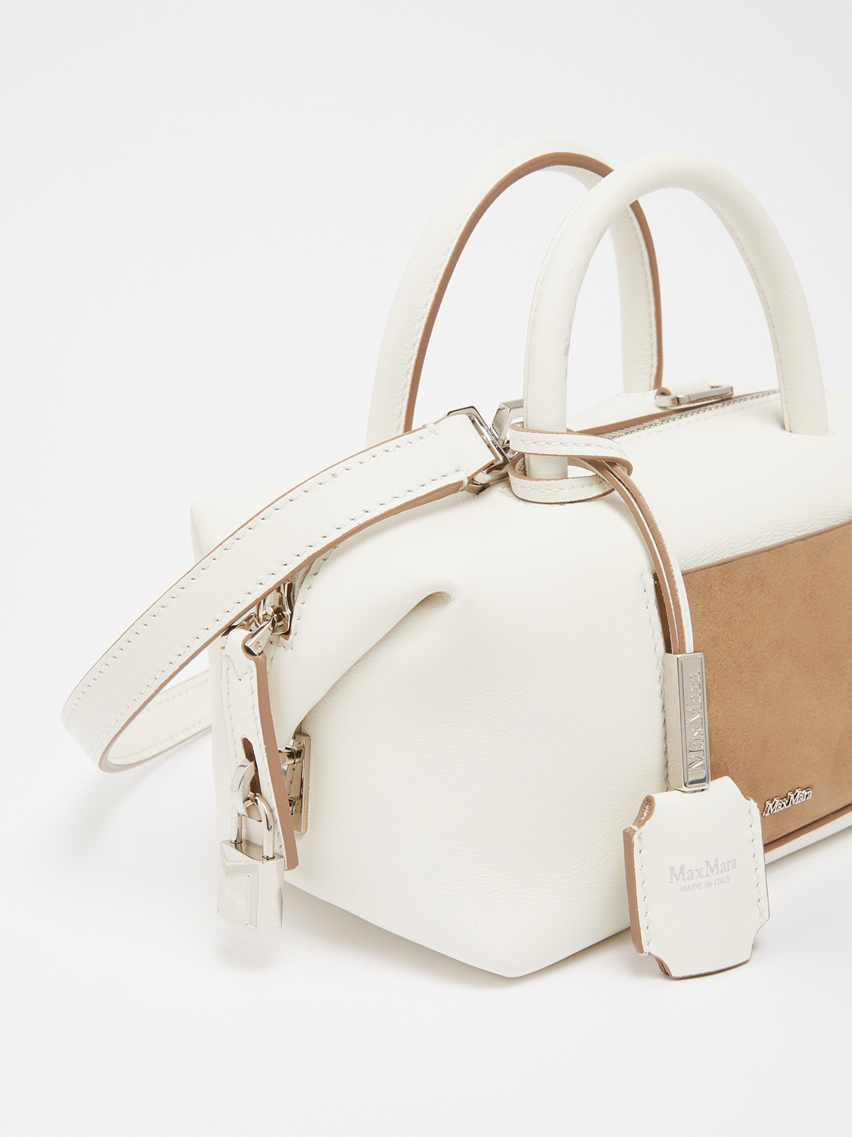 ワックス仕上げのソフトで滑らかなカーフレザーを使用したダブルハンドルバッグ。