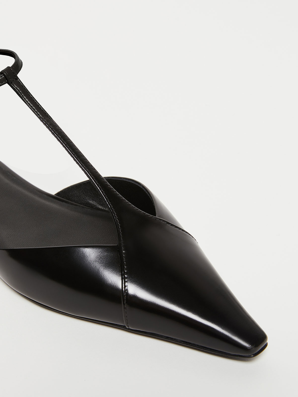 ブラッシュドカーフスキンのバレエシューズ。ナチュラルカーフスキンを使用し、ソフトで軽い履き心地が魅力です。ポインテッドトゥのデザインに甲の部分にTバースストラップをあしらい、エレガントなフォルムに仕上げました。エレガントなドレスから、カジュアルなコーディネートまで幅広く活用いただけるデザインです。