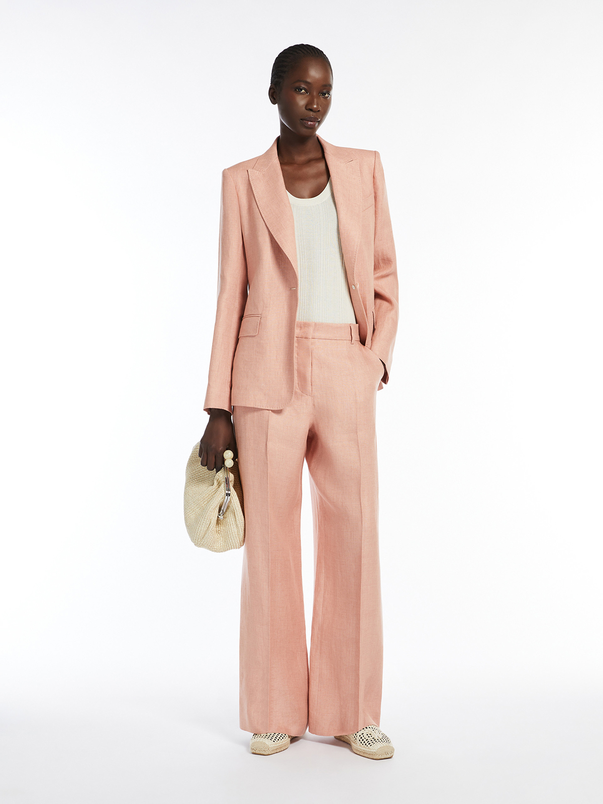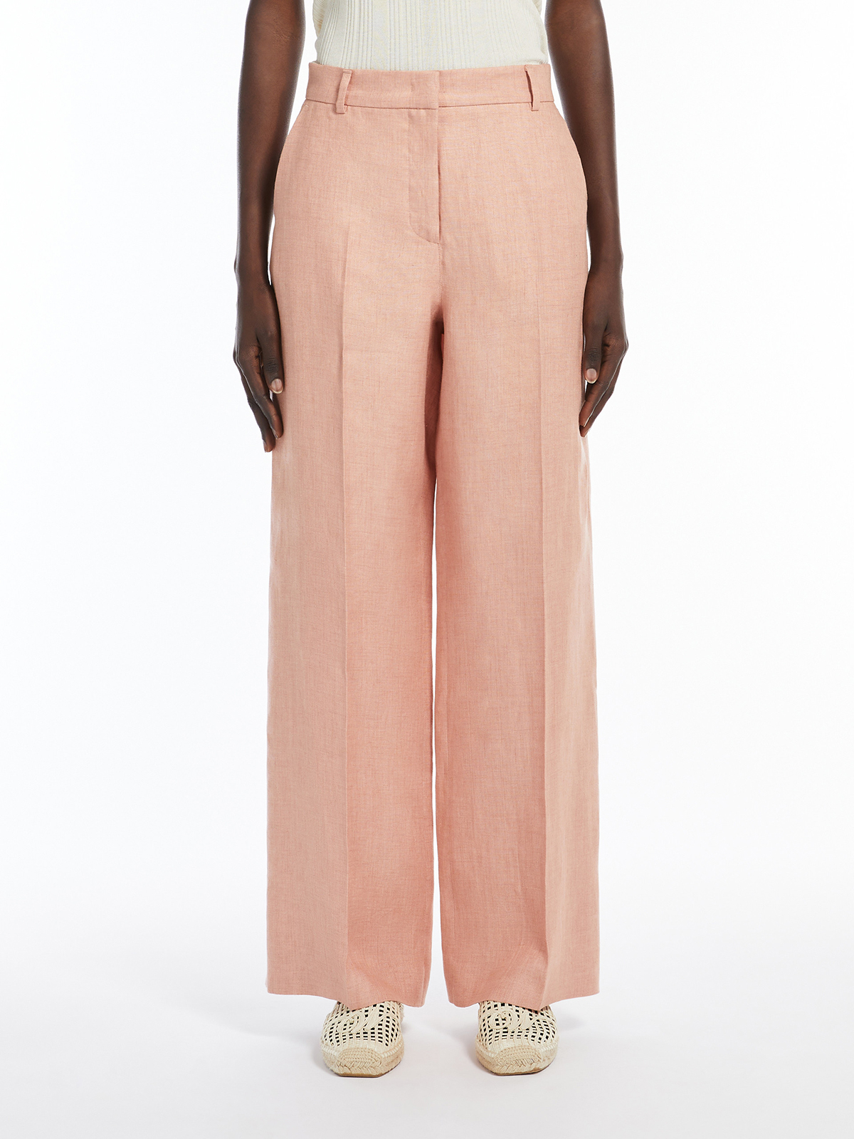 ピュアリネンキャンバスを使用したワイドレッグパンツ。