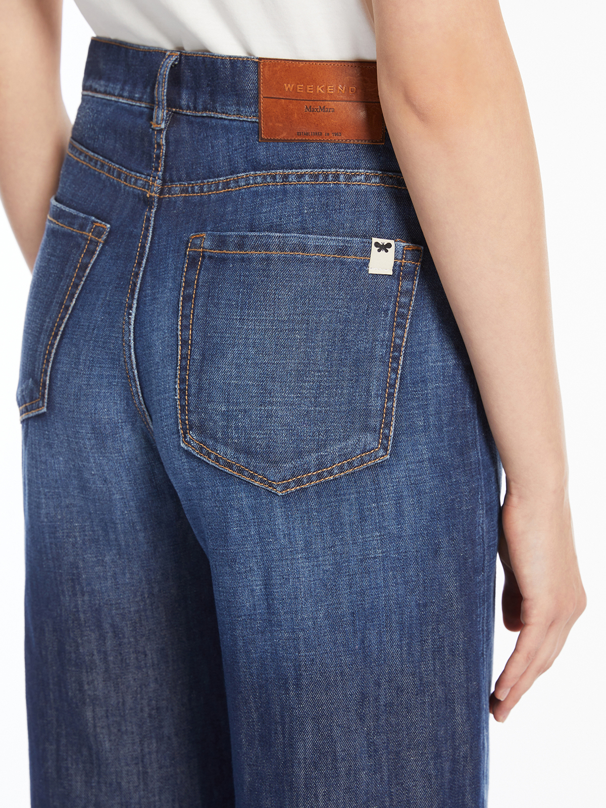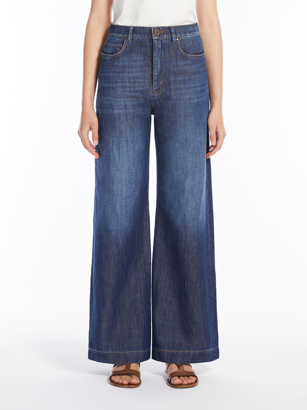 リネンとコットンのインディゴデニムで作られたジーンズ。