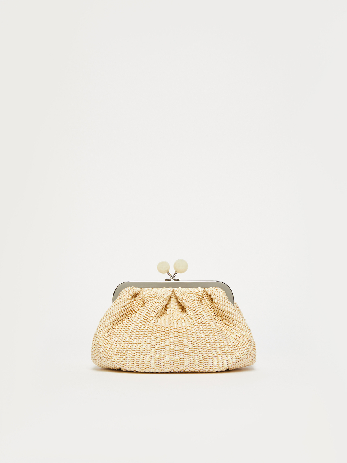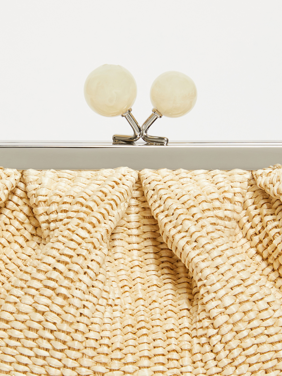 春夏シーズンにぴったりなラフィア風の生地に、ベースに合わせたカラーリングのボールクラスプが特徴的です。