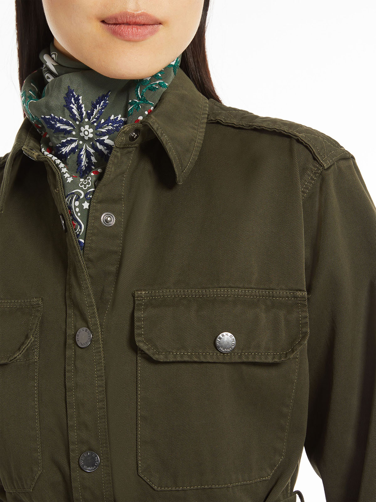 コレクションのモチーフプリントをあしらったピュアシルクツイルスカーフ。 シルクならではの上品な光沢感と薄手で滑らかな肌触りが魅力です。 アレンジしやすい正方形デザイン。 お気に入りのバッグのハンドルに巻いたり、ヘアアクセサリーとしてもお使いいただけます。
