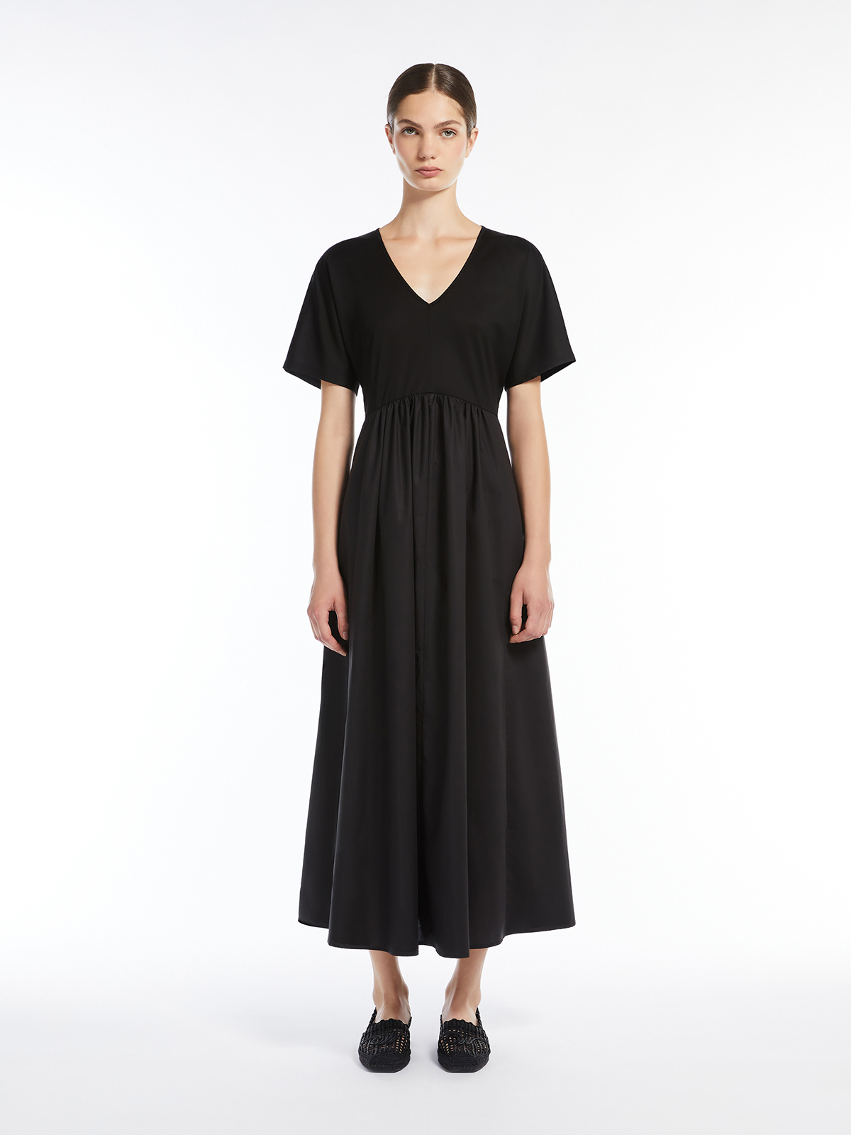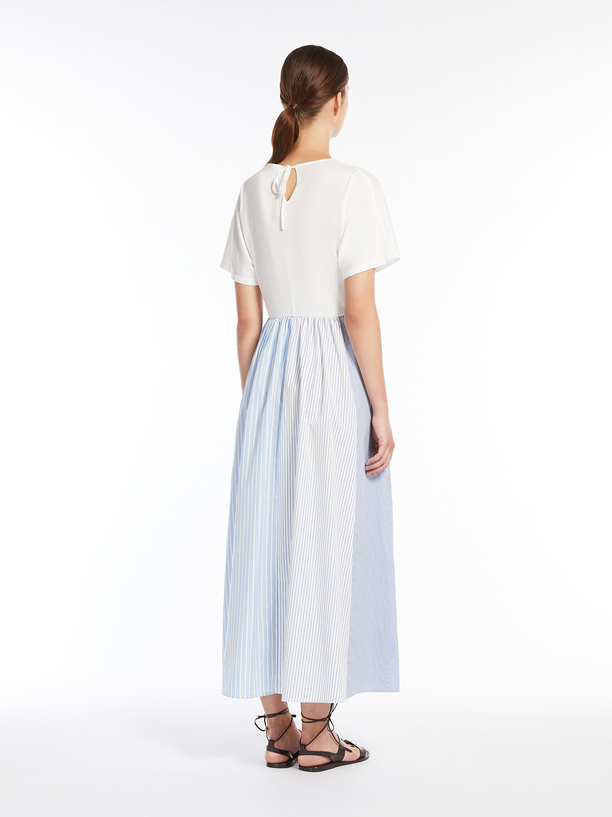 ソフトな肌触りのコットンジャージーのトップスと、程よく張り感のあるコットンポプリンのロングスカートを組み合わせ軽やかな着用感に仕上げました。