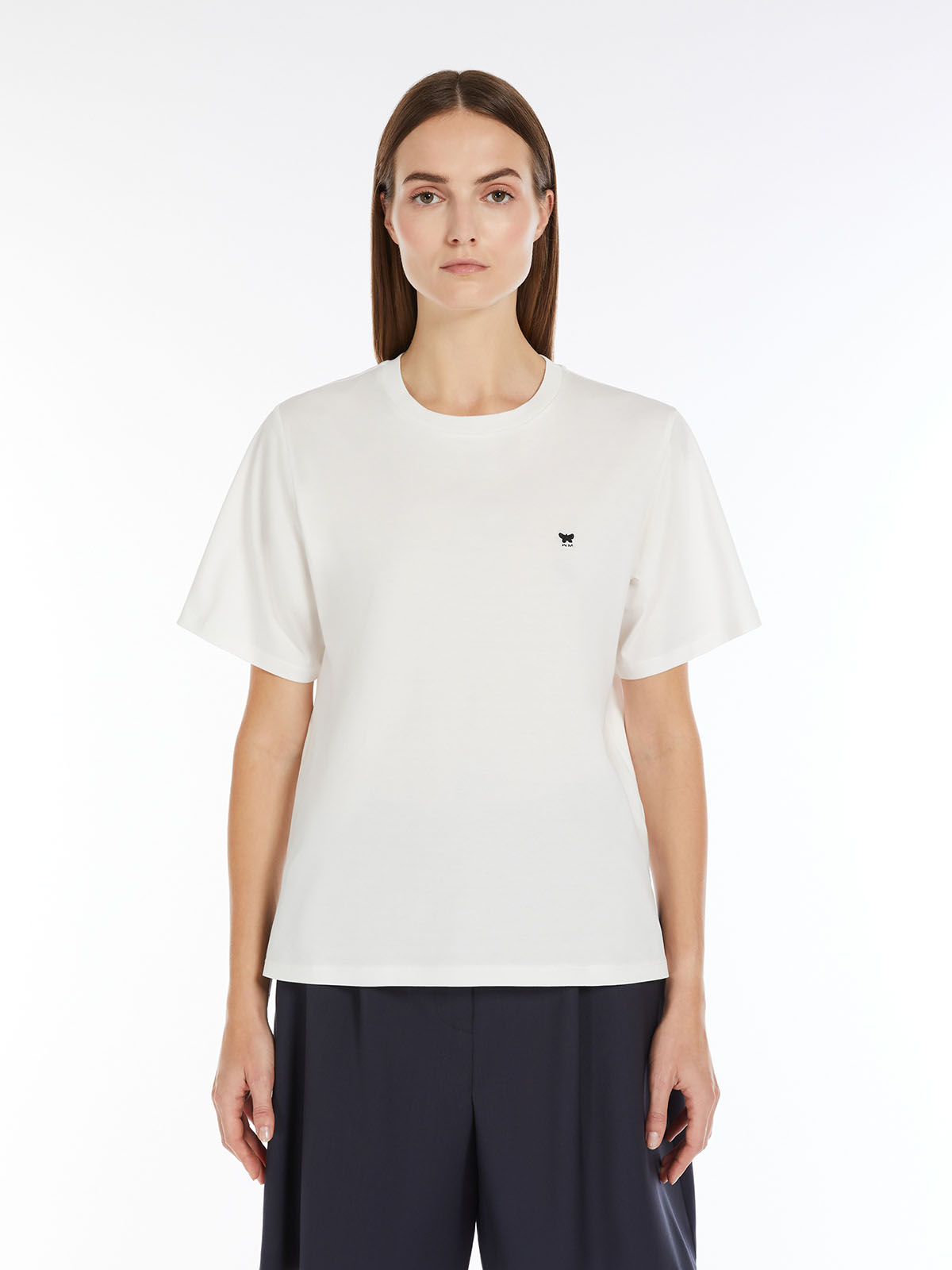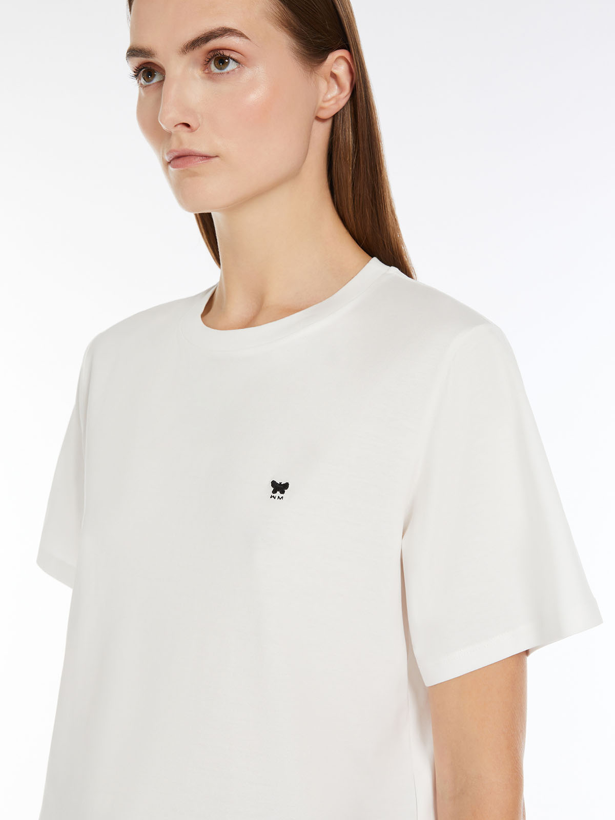 胸元にWEEKEND MAX MARAのアイコン、バタフライモチーフの刺繍をあしらったシンプルなクルーネックTシャツ。
