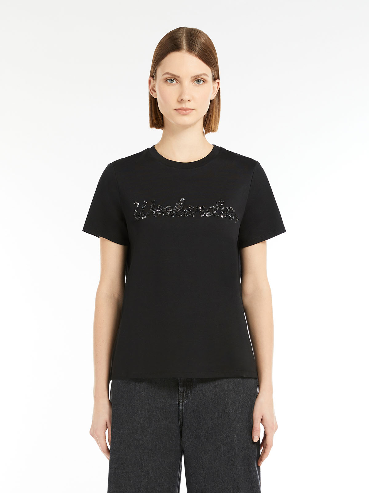 フロントにグラフィックプリントと立体的な刺繍をあしらったコットンジャージーTシャツ。ピュアコットンジャージー生地を使用し、柔らかで肌触りが良くコンフォートな着心地が魅力です。シルエットは、ラウンドネックのストレートフィット。ベーシックなTシャツは、カーディガンやジャケットのインナーとしても使いやすく、幅広いコーディネートでお楽しみいただけます。<ポケット>なし<スタイル>ラウンドネック、半袖