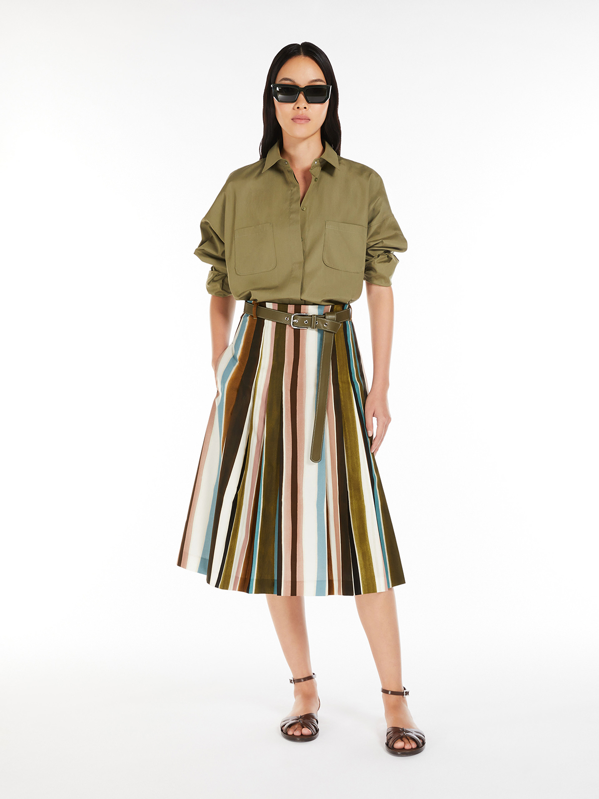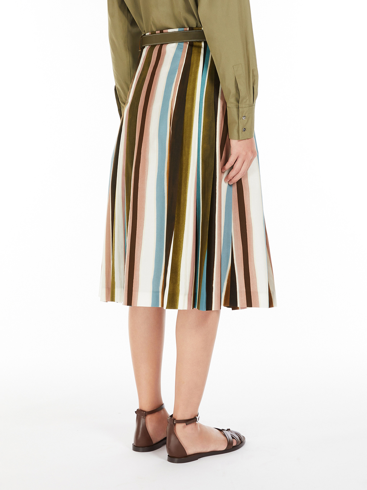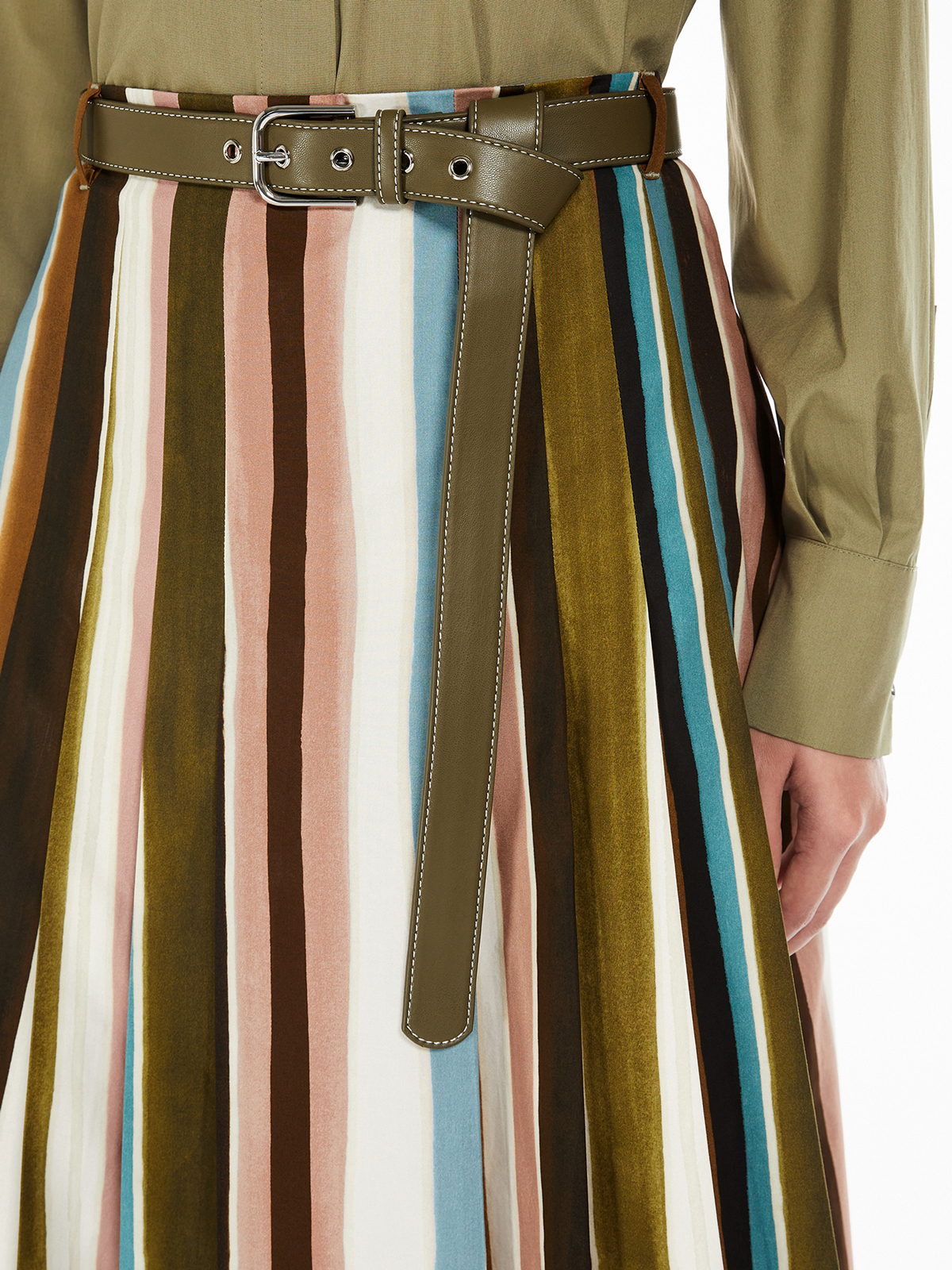 シルエットは、プリーツをあしらったフレアライン。