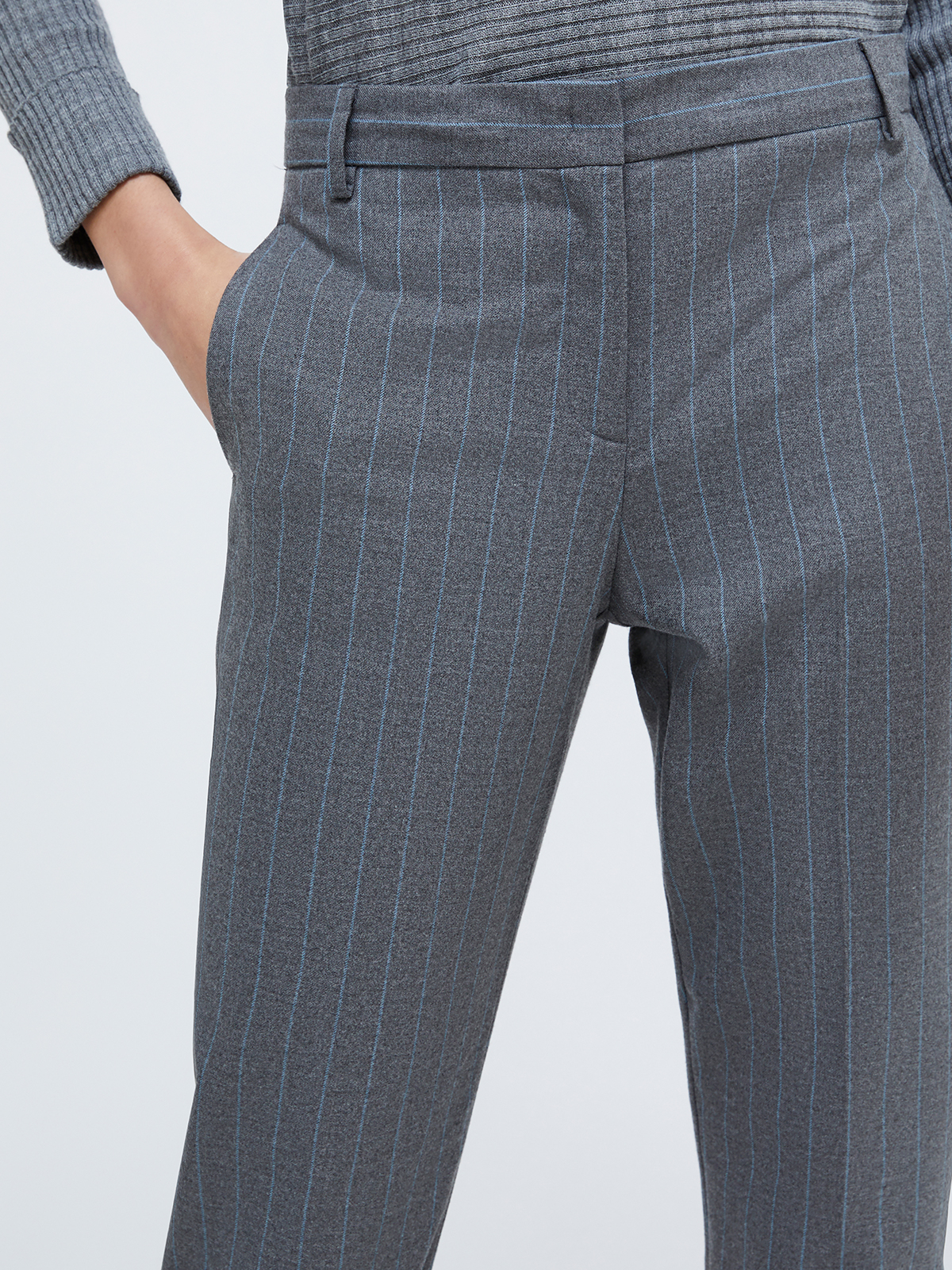 先染めされた繊維から作られた織柄フランネルスリムパンツ。