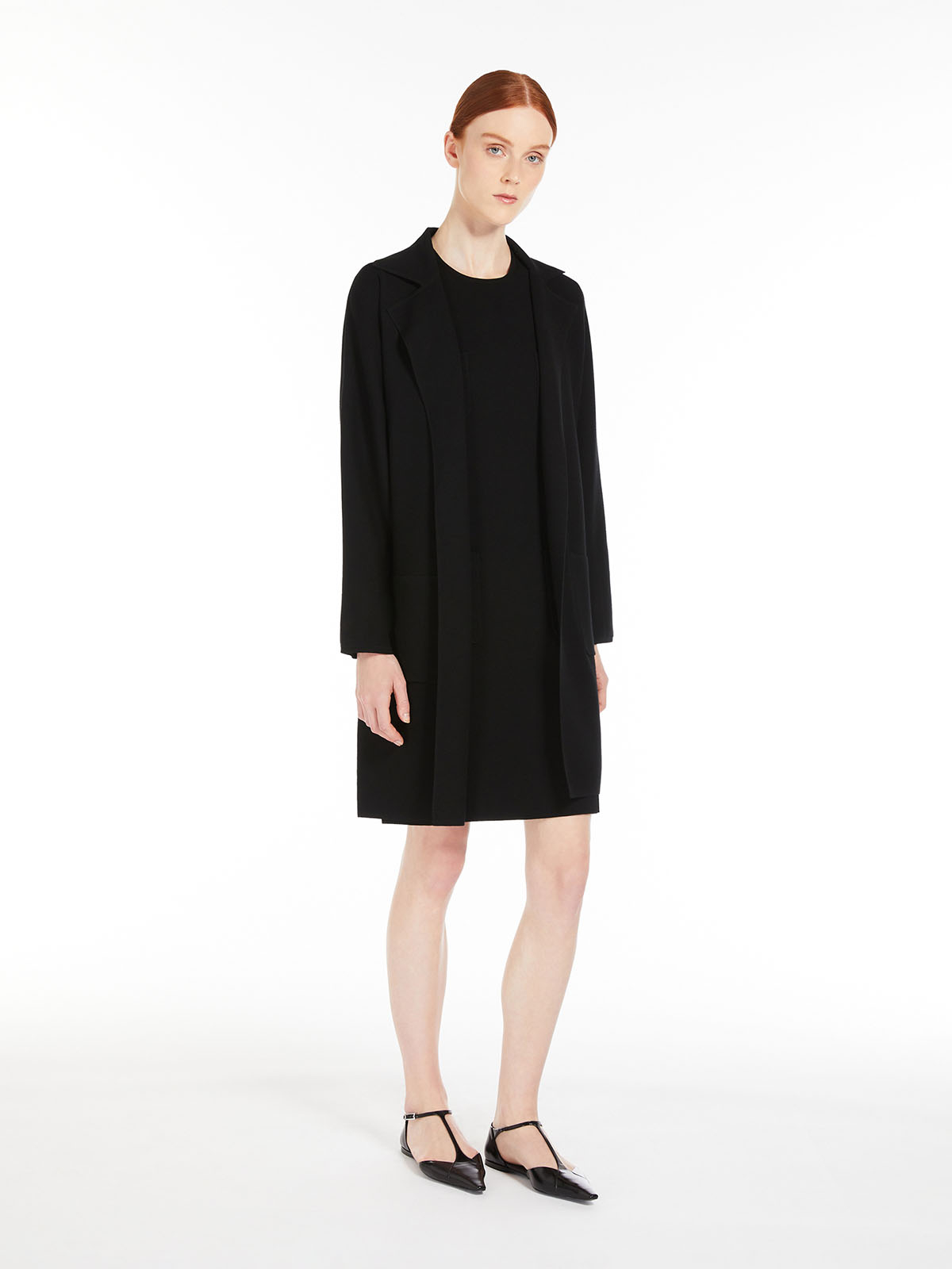 同じ素材のカーディガンを合わせたコーディネートもおすすめです。