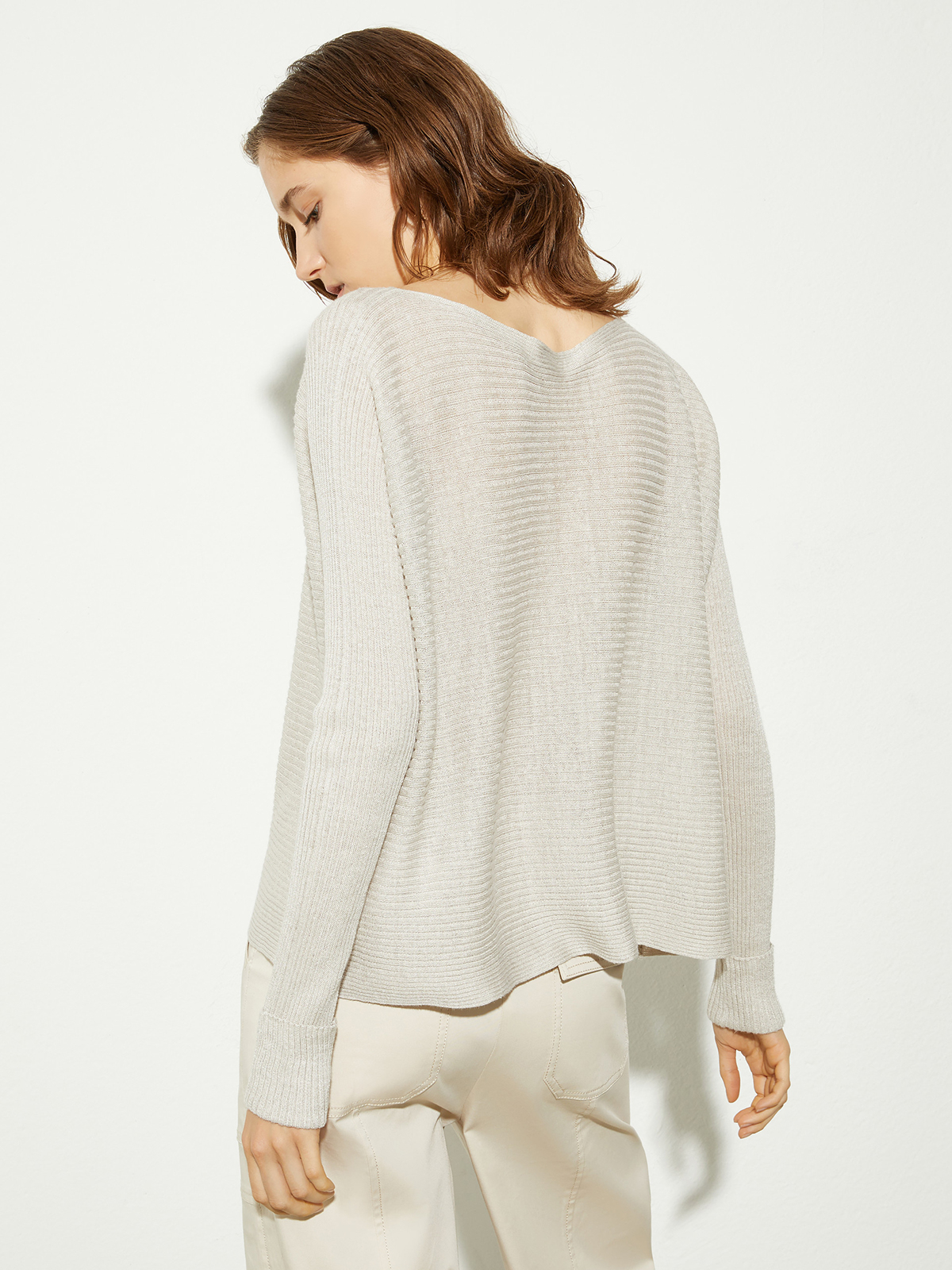 ボートネックにリブを横に配置したボクシーなストレートラインでリラックス感のあるシルエット。