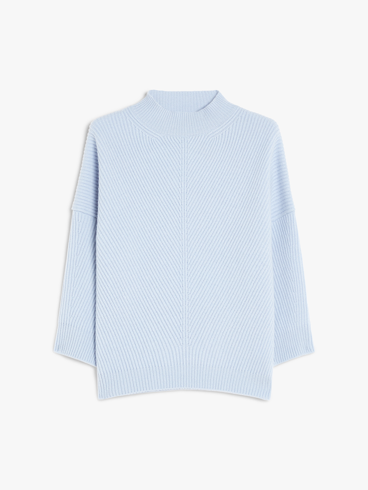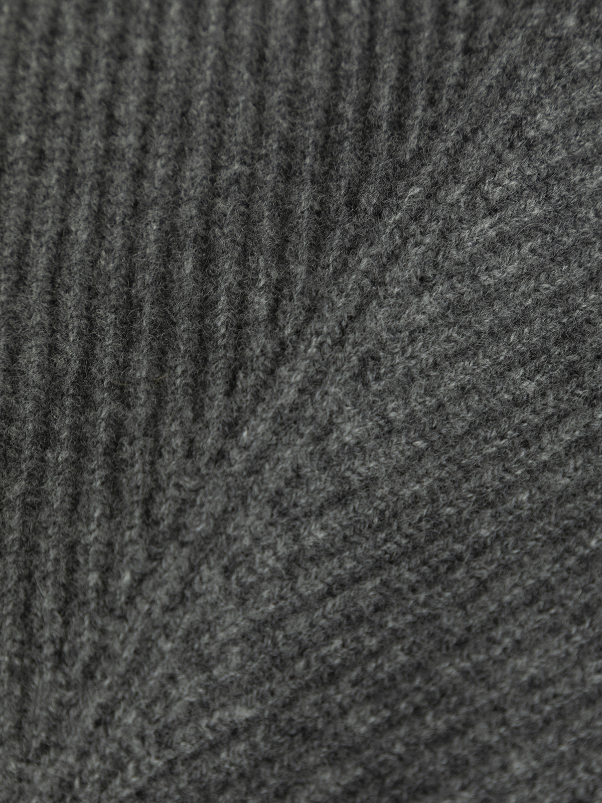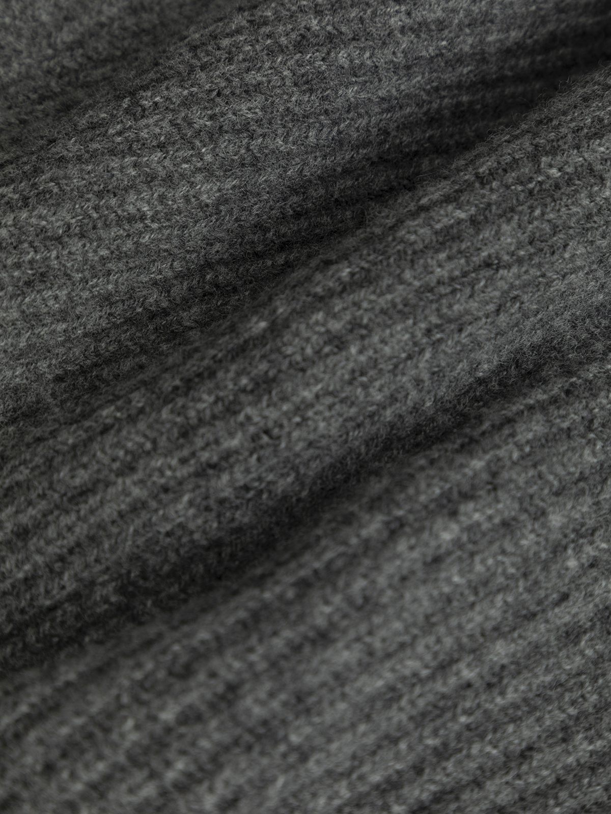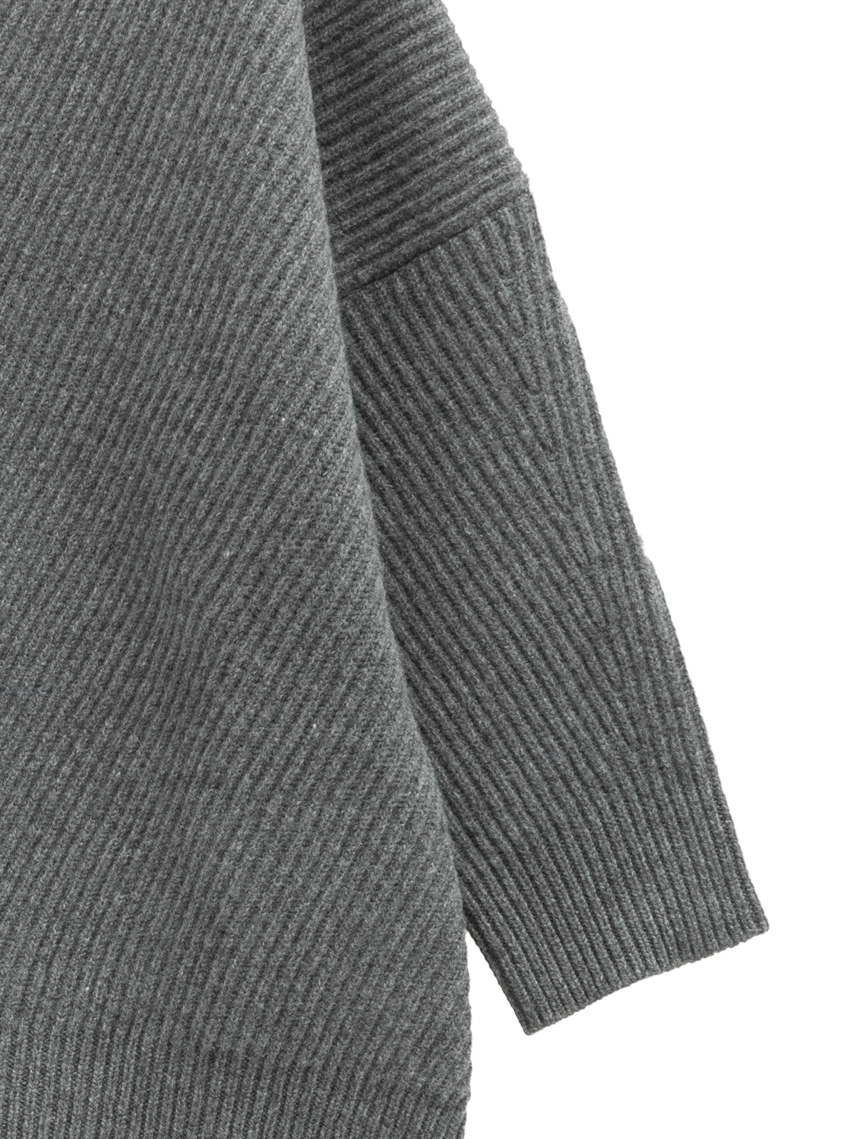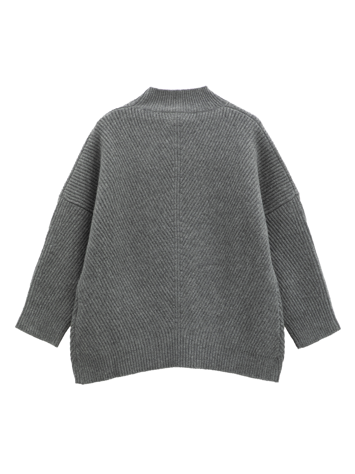 ヘリンボーン風の編み方が特徴的なニット。 ウールとカシミヤがブレンドされたニットは、非常に肌触りが良く柔らかな質感に仕上がっています。 シルエットは高めのネックに七分袖。ドロップショルダーがリラックス感をプラスします。 スカートからパンツまで幅広いアイテムと合わせて着こなしいただけます。 <ポケット>なし <スタイル>七分袖