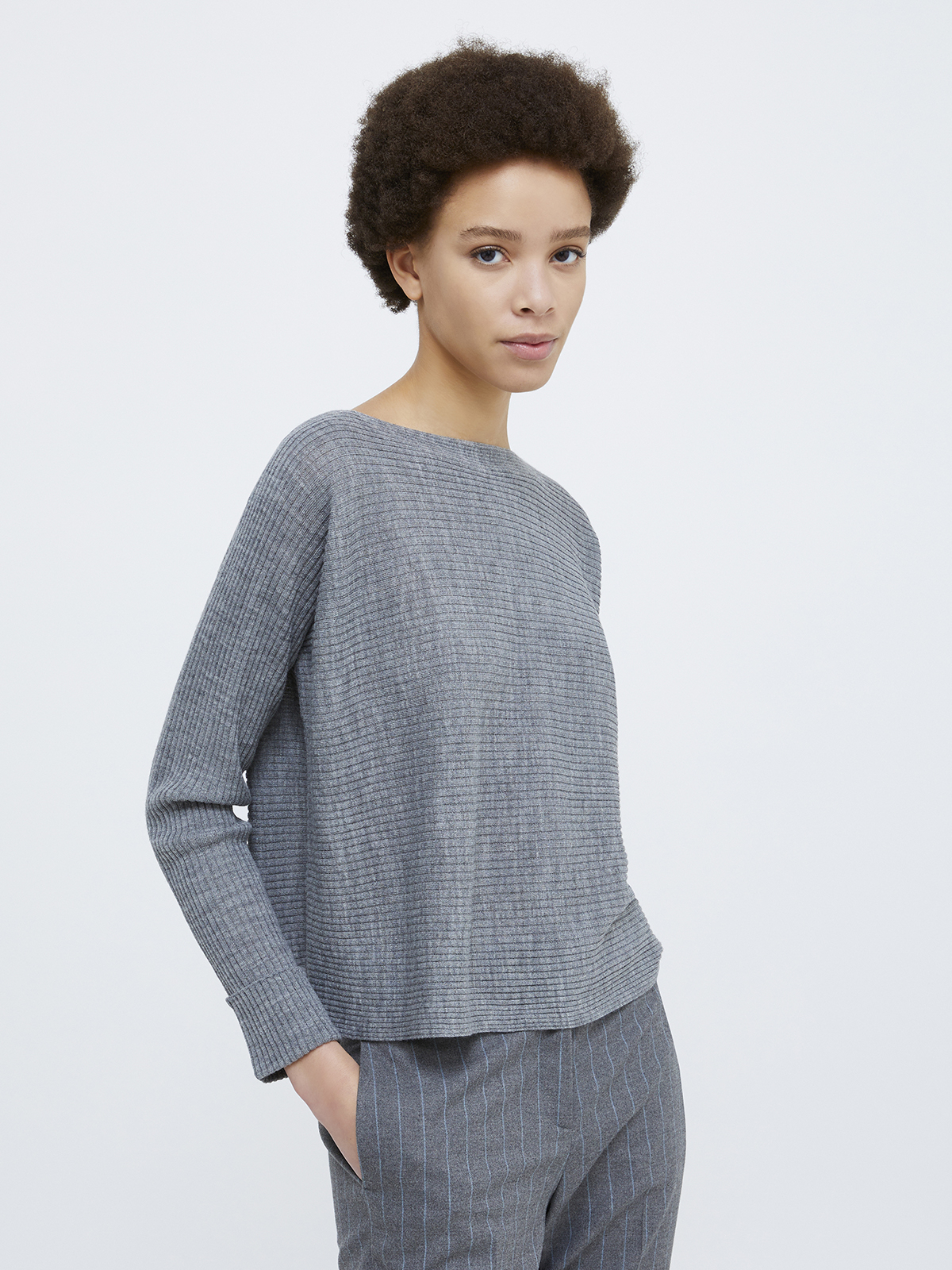 ボートネックにリラックス感のあるワイドなストレートライン。