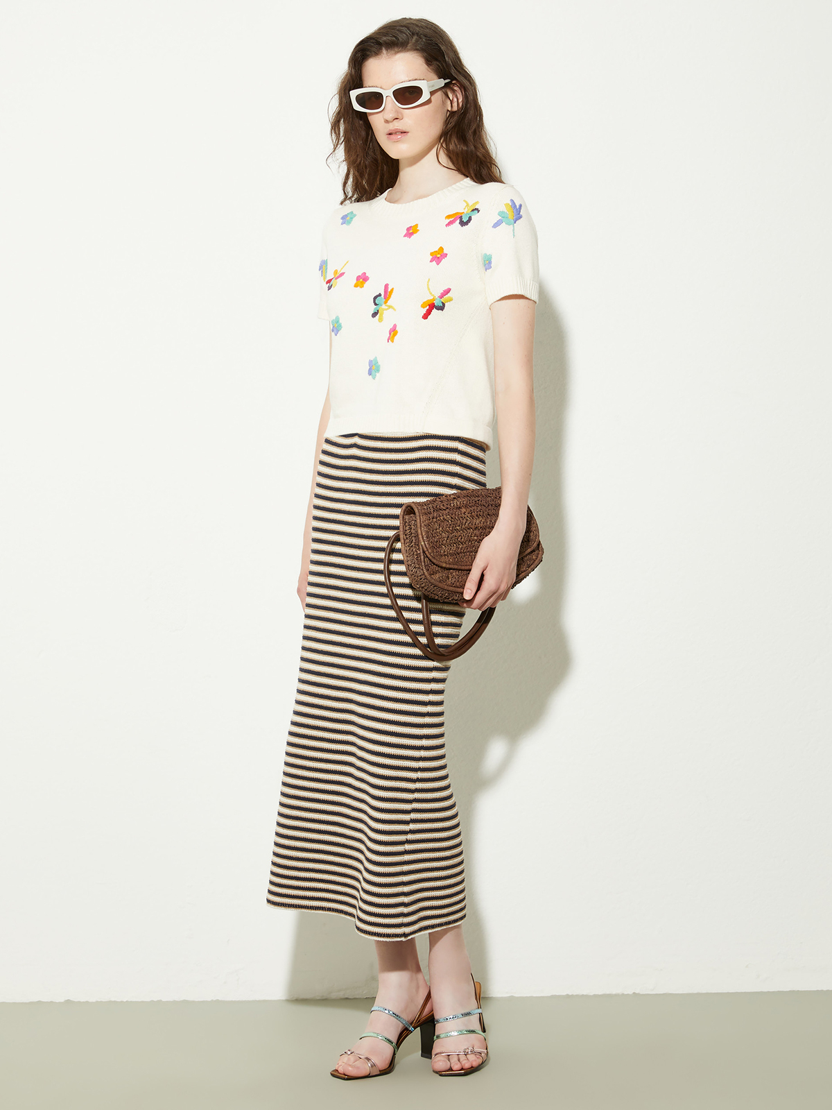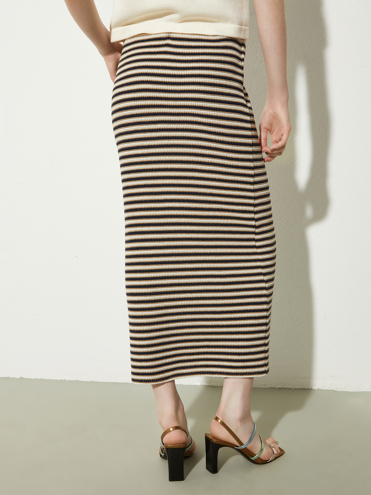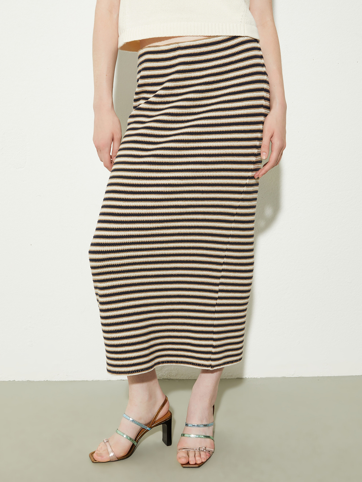 遊び心のある立体感のあるストライプが特徴的なペンシルスカート。