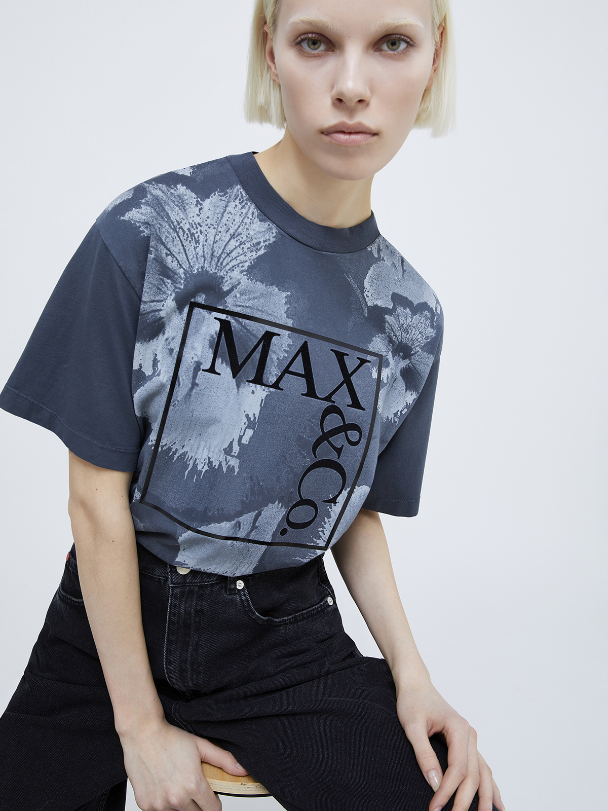 フラワープリントを施したMAX&Co.のアイコニックなロゴTシャツ。