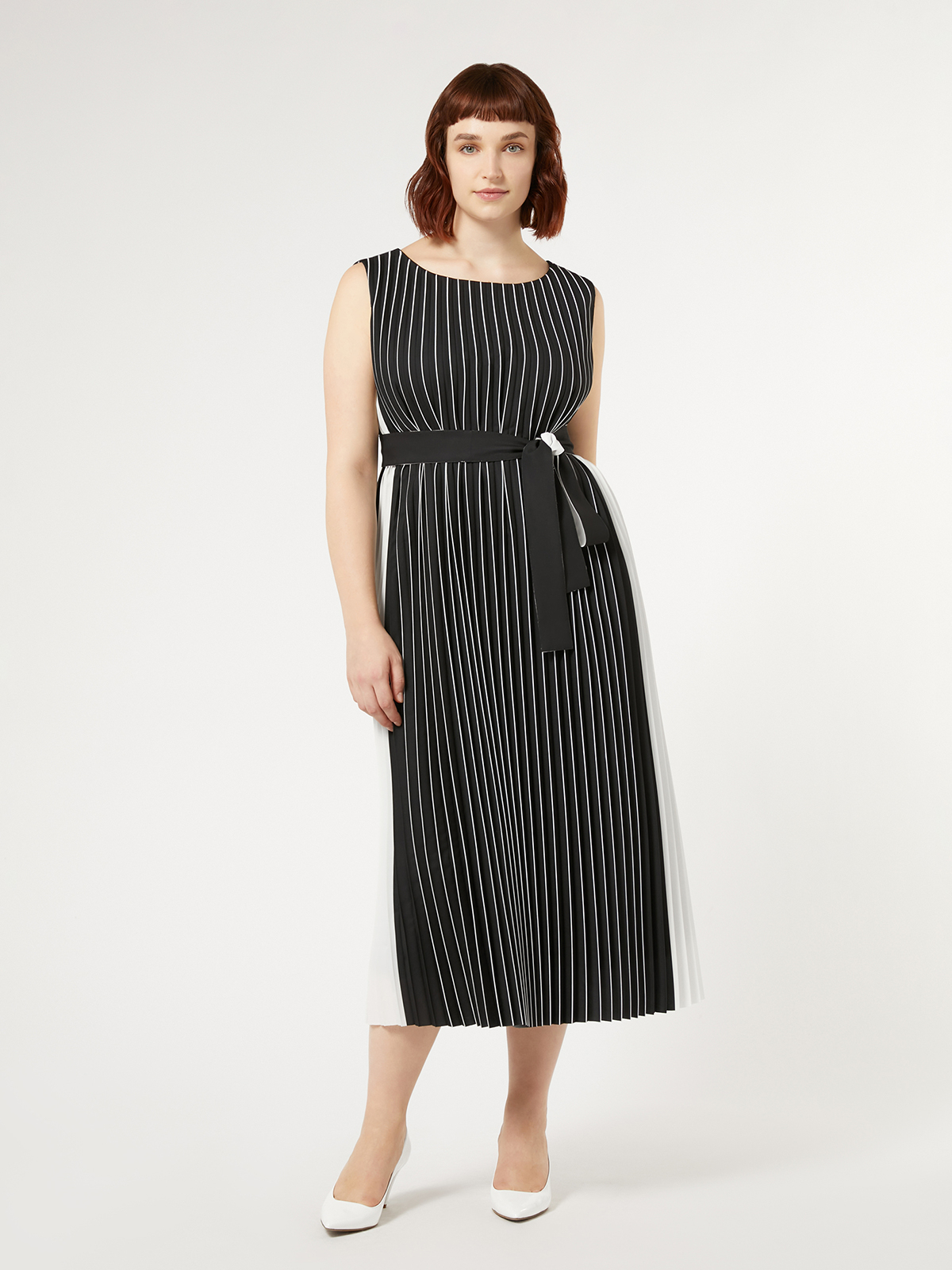 サイドに合わせた無地カラーが縦のラインを強調し、スマートなストレートシルエットを演出します。