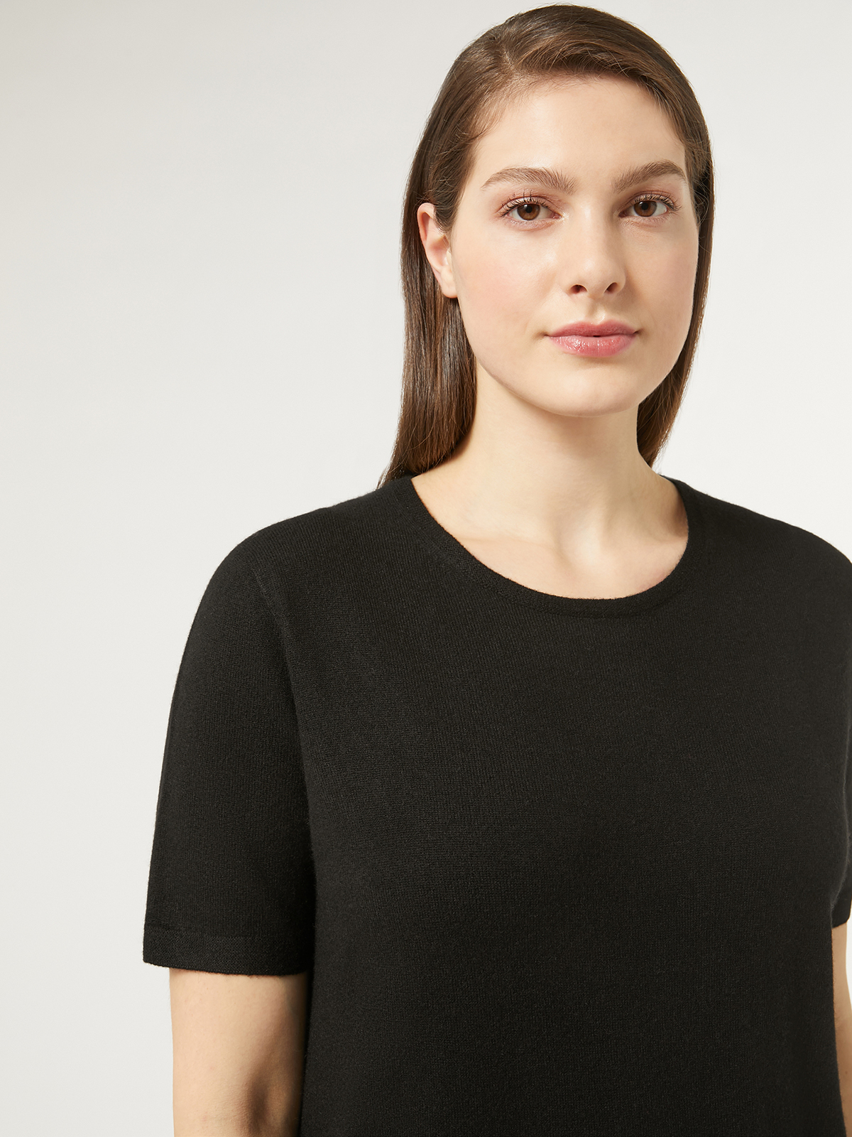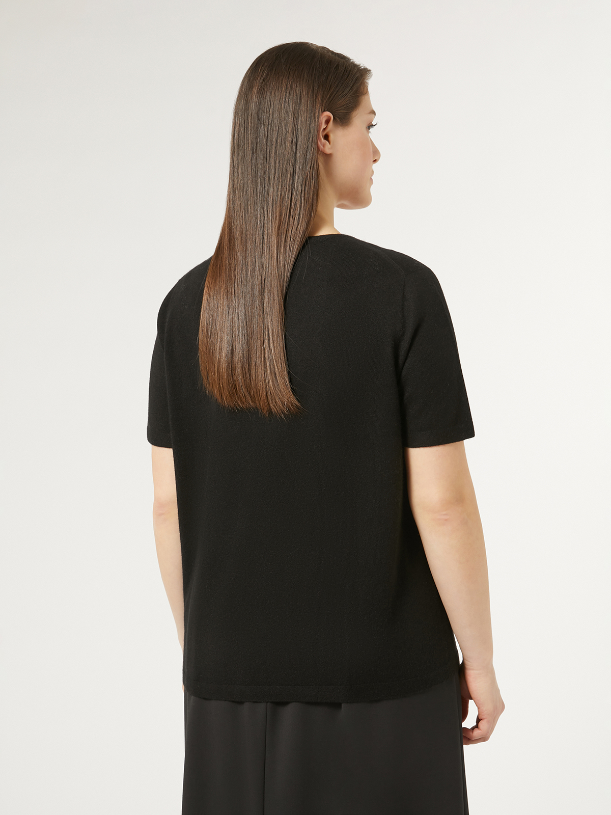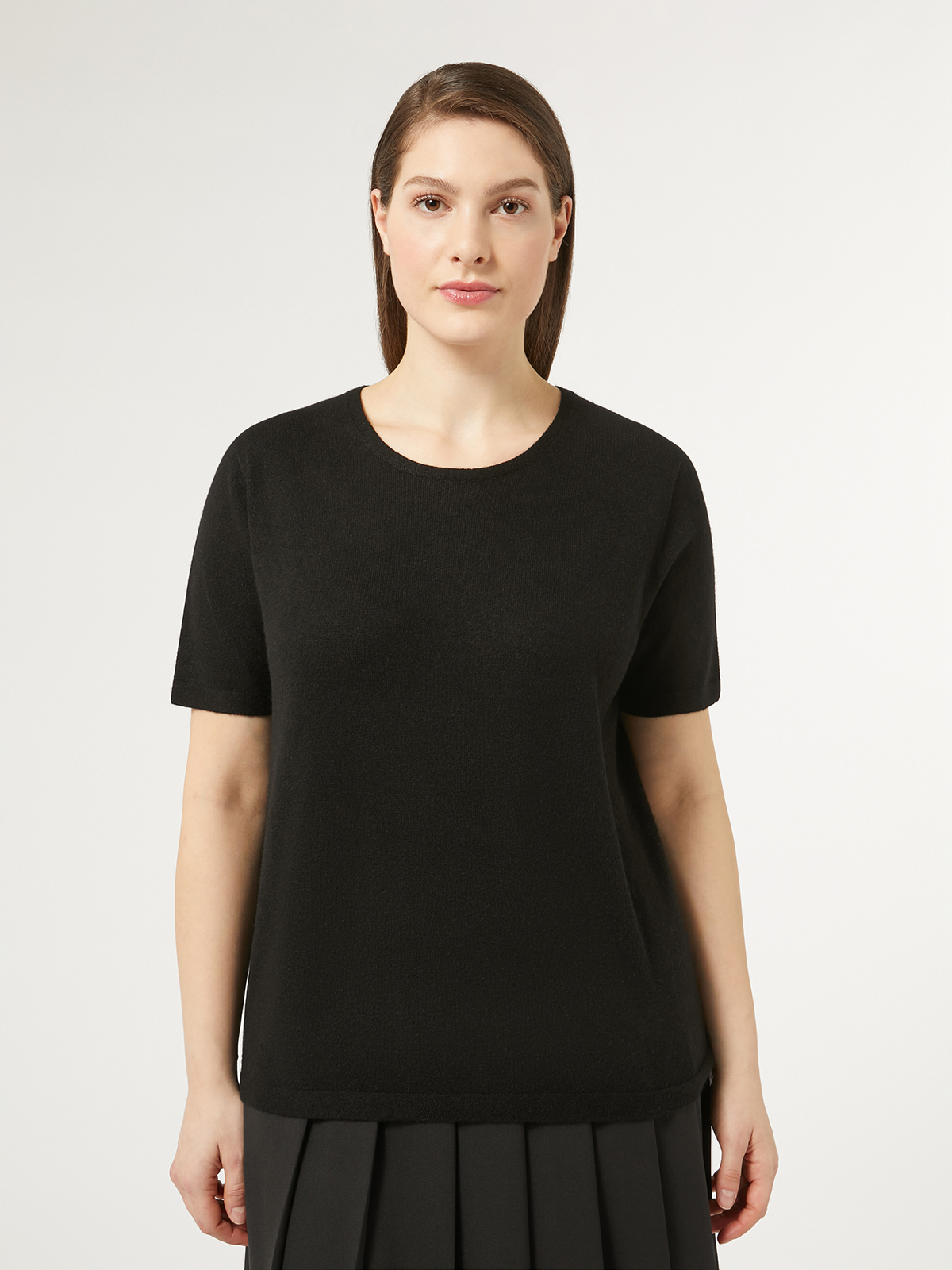 高品質なカシミアニットでお仕立てした定番半袖カットソー。
