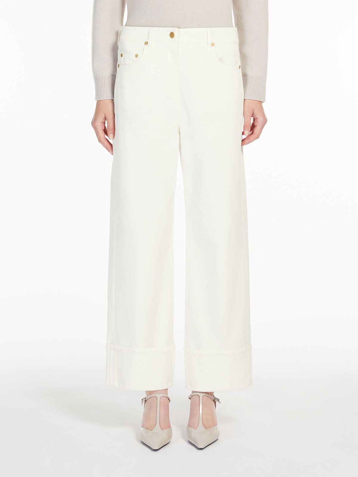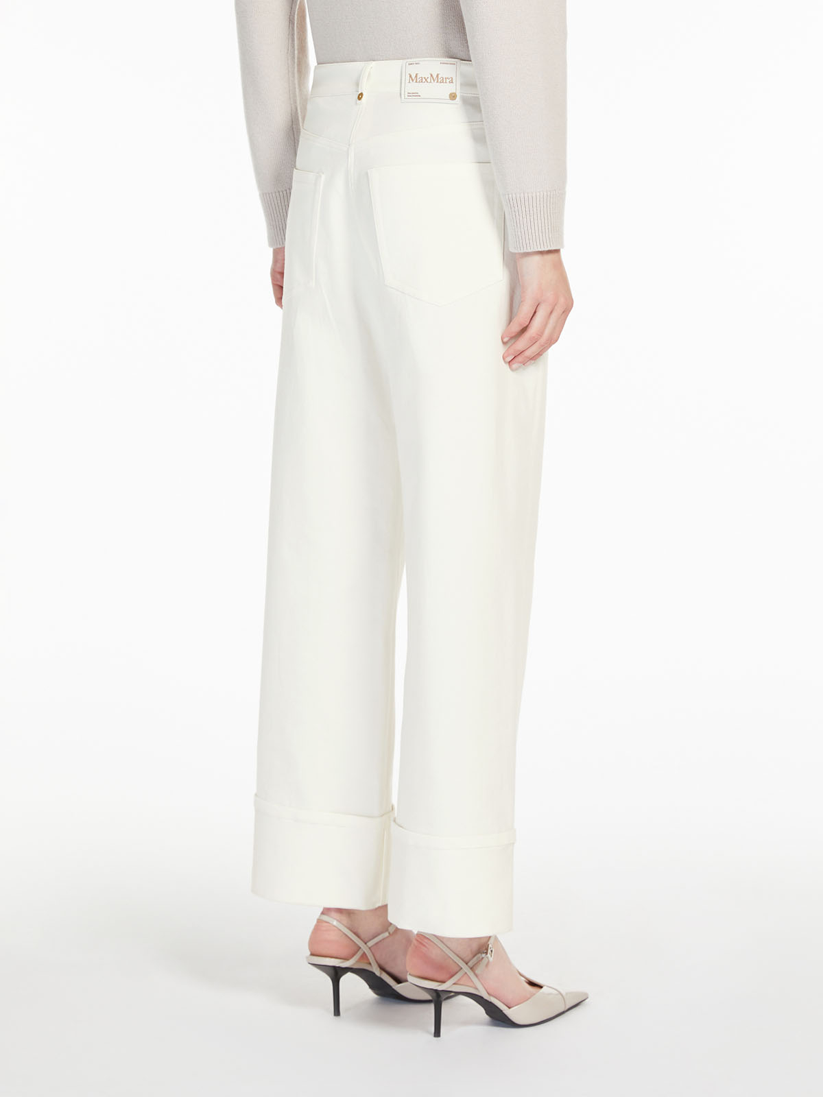 シルエットはワイドレッグのバナナカット。裾の深いターンアップディテールがアクセントをプラスします。