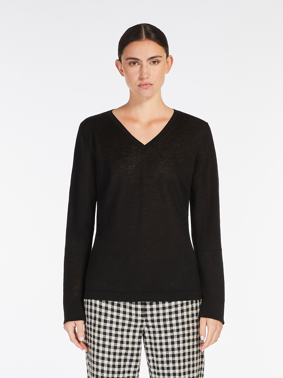 ピュアリネン100%糸で編み立てた爽やかなニット。 ウエストを絶妙にシェイプさせた立体的なシルエットがリラクシーな着心地と都会的な女性らしさを両立させます。 デコルテを美しく見せるVネックデザインで顔まわりにクリーンな抜け感をプラス。 パンツにもスカートにも合わせやすく幅広いコーディネートでお楽しみいただけます。 <ポケット>なし <スタイル>Vネック