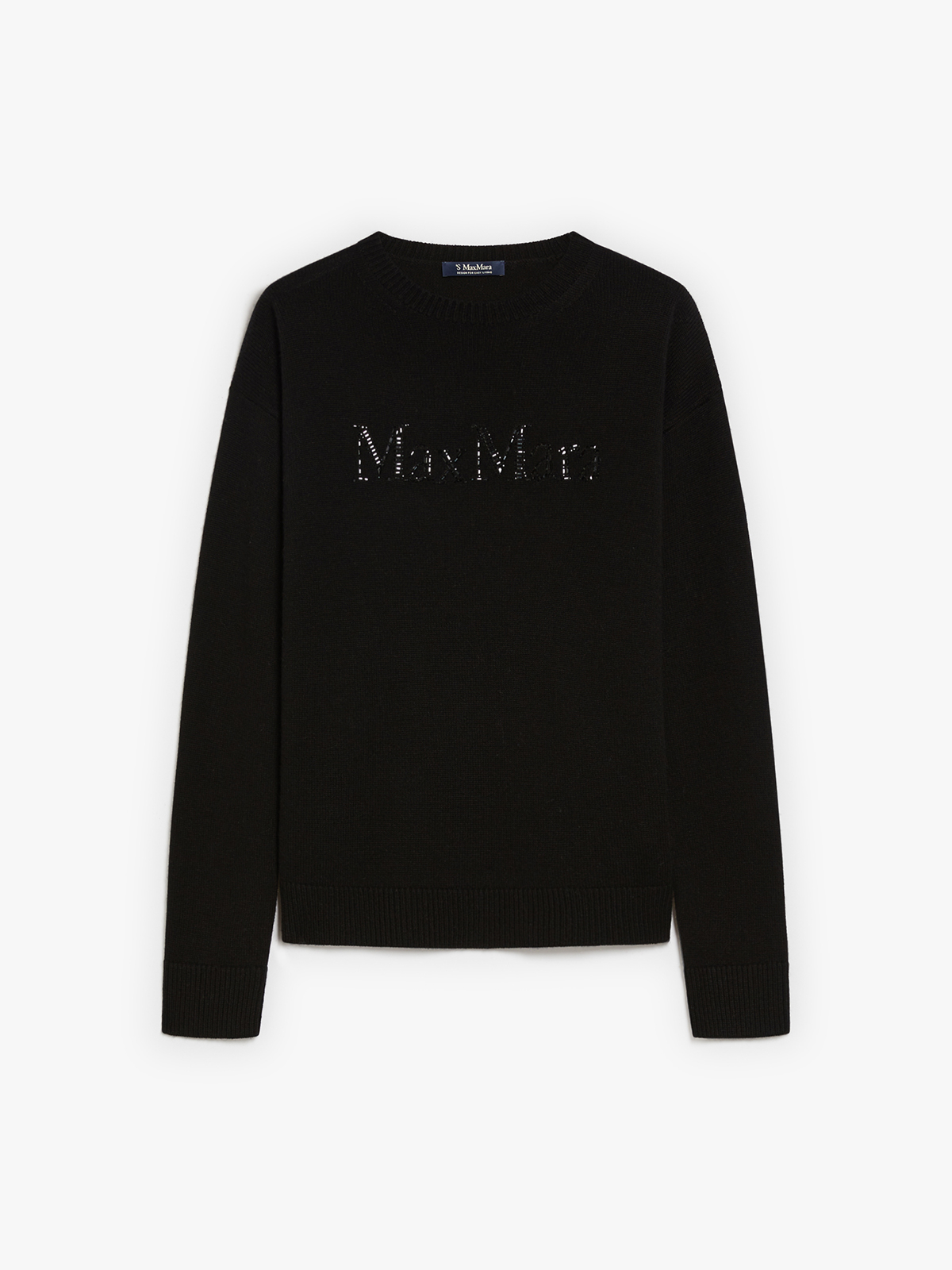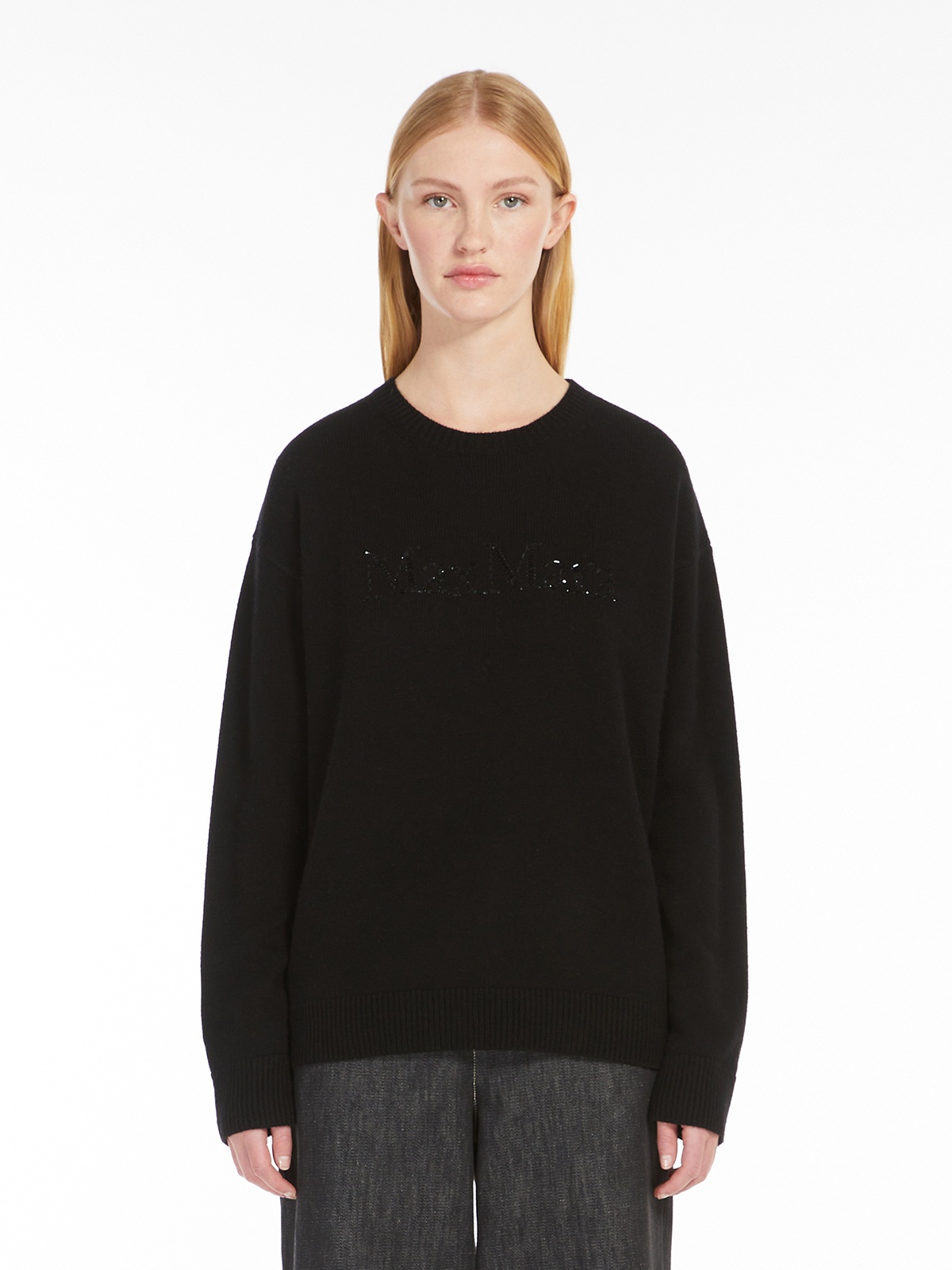 ラインストーンでブランドロゴがあしらわれたニット。 上質なウールとカシミヤを使用した生地は非常に肌触りがよく、柔らかな質感に仕上がっています。 ラウンドネックにややオーバーサイズシルエット。 ドロップショルダーがリラックス感をプラスします。 スカートにもパンツにも合わせやすい着丈で、様々なアイテムとコーディネートしやすい汎用性の高いモデルです。 <ポケット>なし <スタイル>ラウンドネック